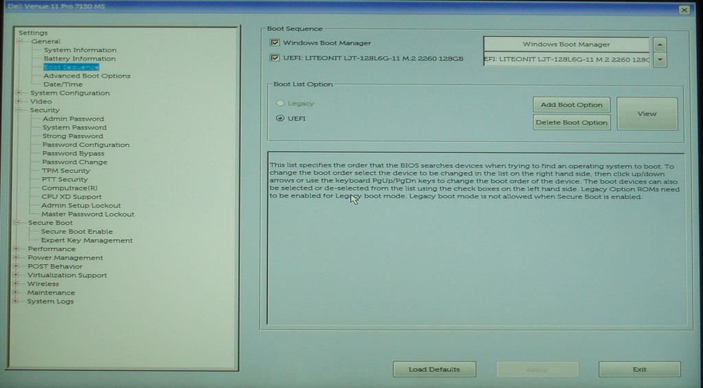 Venue11と一緒に購入した薄型キーボードは故障したので別途購入したUSBキーボードで使っているのでUSBバブにlubuntu起動フラッシュメモリとキーボードを繋いで(タブレットPCでUSBポートが1つしかない)電源ボタンを押した後、ボリューム-(マイナス)を押してBIOS設定画面を出す。Boot Sequenceでlubuntu起動USBメモリを一番上に持って来てApplyボタンを押して変更を保存してタブレットPCを起動する。