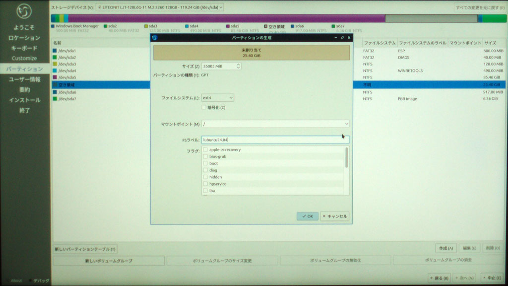 既にDELLノートパソコンでlubuntuを長年使っていてインストールもうまく出来ているのでタブレットPCへもlubuntuをインストールする事に変更する。